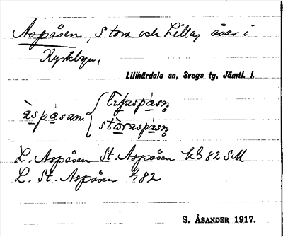Information om ortnamnet Aspåsen, Stora och Lilla