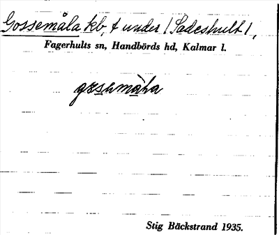 Bild på arkivkortet för arkivposten Gossemåla
