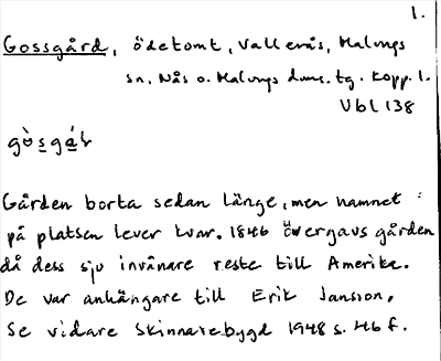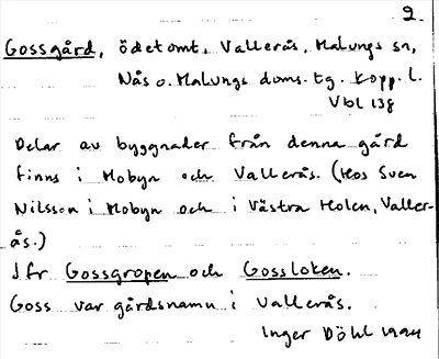 Information om ortnamnet Gossgård