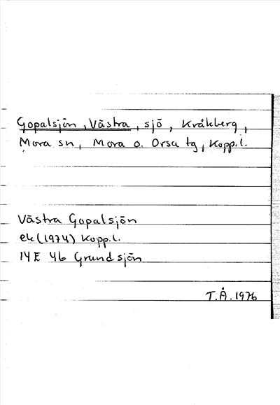 Information om ortnamnet Gopalsjön, Västra