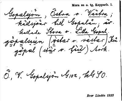 Information om ortnamnet Gopalsjön, Östra o. Västra
