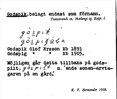 Information om arkivposten Godspik