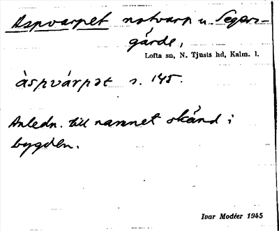 Information om ortnamnet Aspvarpet
