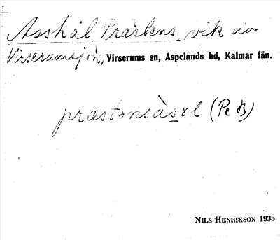 Bild på arkivkortet för arkivposten Asshål Prästens