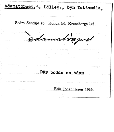 Information om ortnamnet Adamatorpet