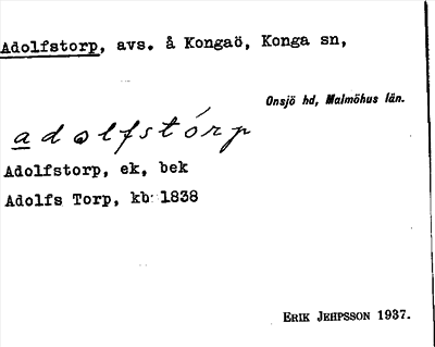 Information om ortnamnet Adolfstorp