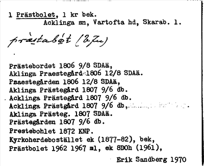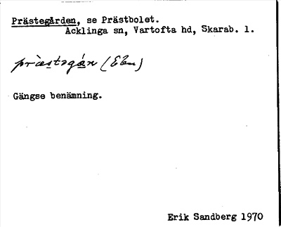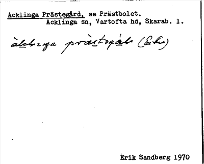 Information om ortnamnet Acklinga prästbol