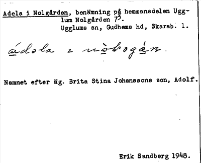 Information om ortnamnet Adela i Nolgården