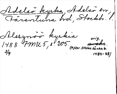 Information om ortnamnet Adelsö kyrka