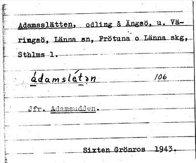 Information om ortnamnet Adamsslätten