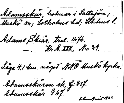 Information om ortnamnet Adamsskär
