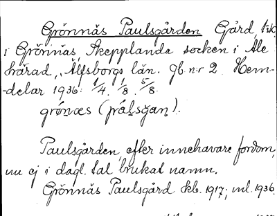 Information om arkivposten Grönnäs Paulsgården