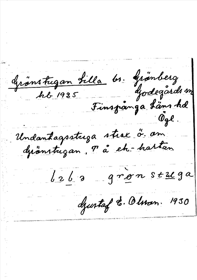 Information om arkivposten Grönstugan Lilla
