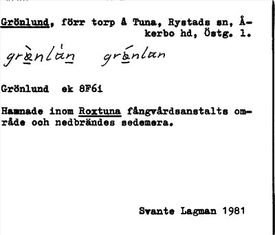 Information om arkivposten Grönlund