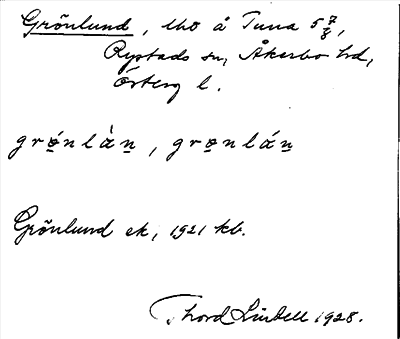 Bild på arkivkortet för arkivposten Grönlund