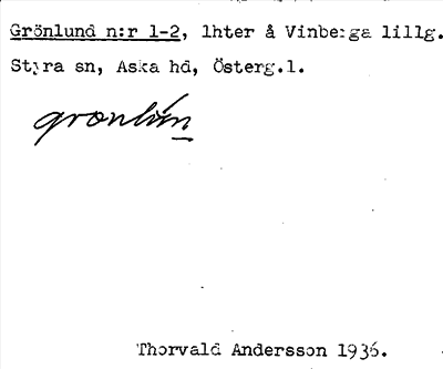 Bild på arkivkortet för arkivposten Grönlund