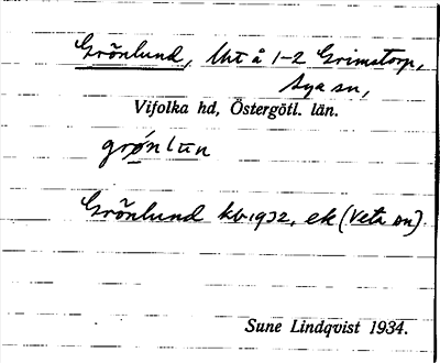 Bild på arkivkortet för arkivposten Grönlund