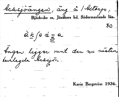 Information om ortnamnet Acksjöängen