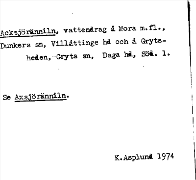 Information om ortnamnet Acksjöränniln, se Axsjöränniln