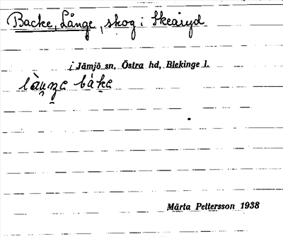 Information om ortnamnet Backe, Långe