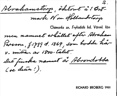 Information om ortnamnet Abrahamstorp