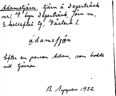 Information om ortnamnet Adamstjärn