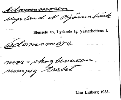 Information om ortnamnet Adomsmoren