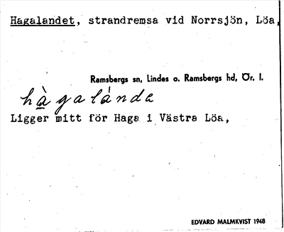 Information om arkivposten Hagalandet