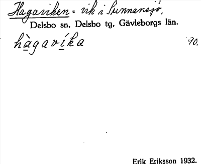 Information om ortnamnet Hagaviken