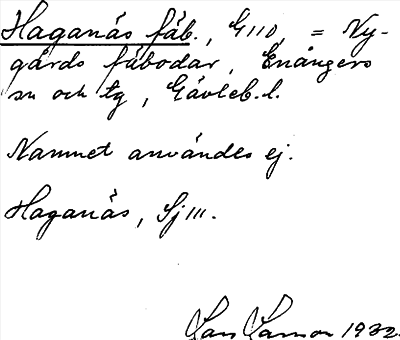 Information om ortnamnet Haganäs fäb