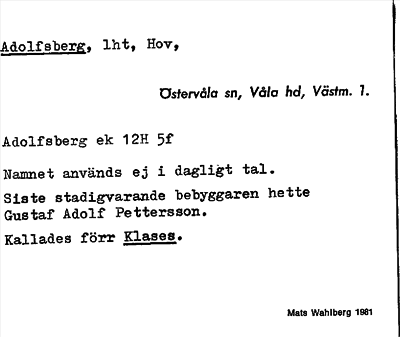 Information om ortnamnet Adolfsberg