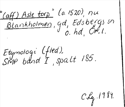 Information om ortnamnet aff Asle torp, nu Blankholmen
