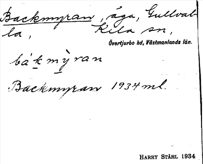 Information om ortnamnet Backmyran