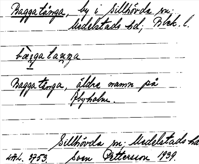 Information om ortnamnet Baggatånga