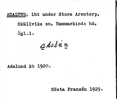 Information om ortnamnet Adalund