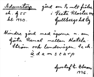 Information om ortnamnet Adamstorp