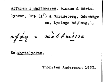 Information om ortnamnet Affären i Maltmossen