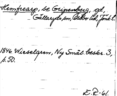 Information om Hemfrearp, se Gripenberg