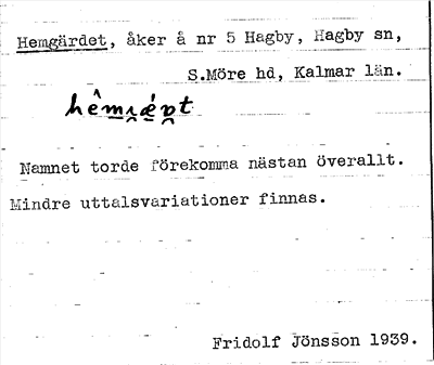 Information om ortnamnet Hemgärdet