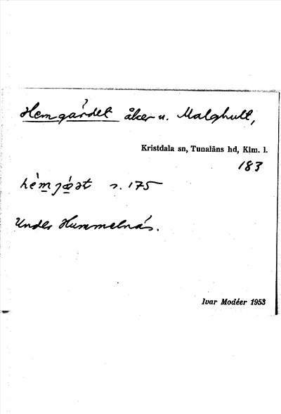 Information om arkivposten Hemgärdet