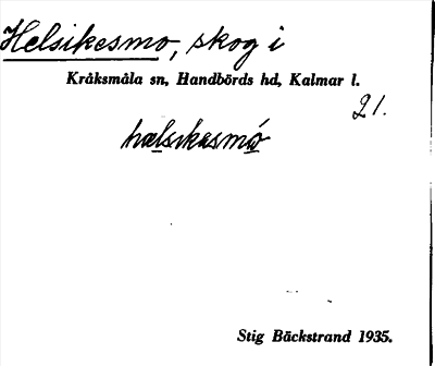 Information om ortnamnet Helsikesmo