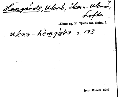 Bild på arkivkortet för arkivposten Hemgärde, Uknö