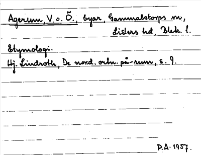 Information om ortnamnet Agerum, V. o. Ö