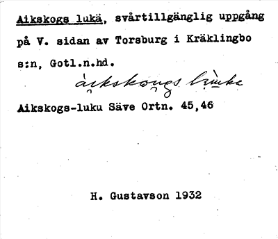 Information om ortnamnet Aikskogs lukä