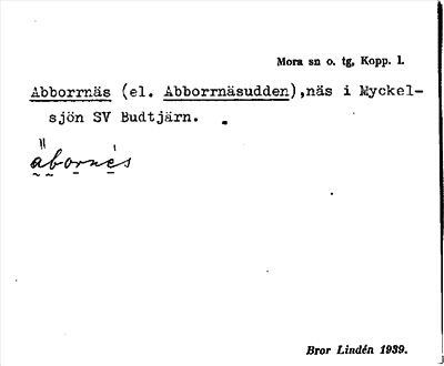 Information om ortnamnet Abborrnäs el .Abborrnäsudden