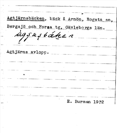Information om ortnamnet Agtjärnsbäcken