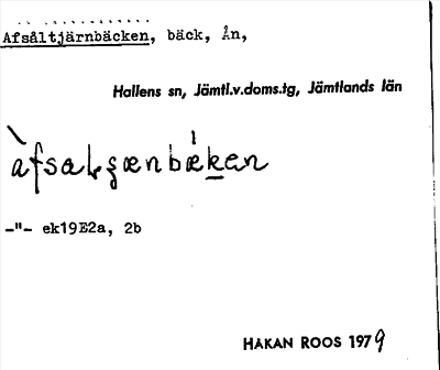 Information om ortnamnet Afsåltjärnbäcken