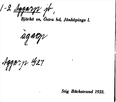 Information om ortnamnet Aggarp