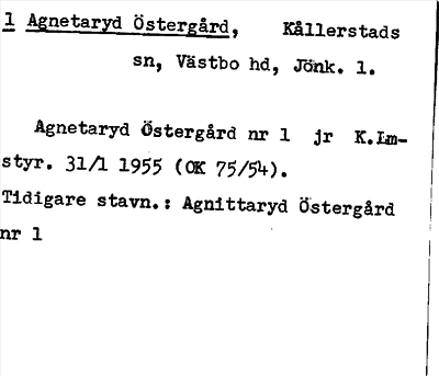 Information om ortnamnet Agnetaryd Östergård