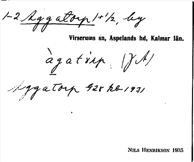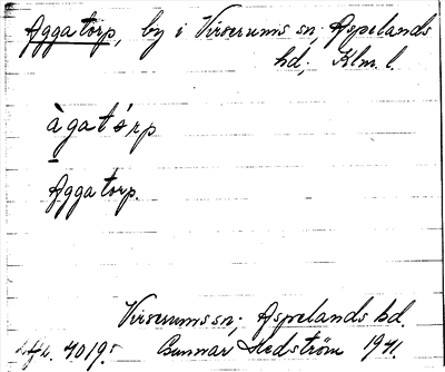 Information om ortnamnet Aggatorp